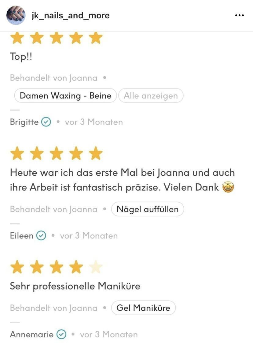 Ich lege besonderen Wert auf einen umfassenden Kundenservice. Ich verwende nur qualitativ hochwertige Produkte und garantiere so, dass Sie meinen Salon mit glänzenden und gesunden Nägeln verlassen.